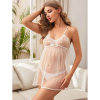 Material: 35% Algodón y 65% Polyester Color: Negro con detalles blancos Numero de prendas: 1 Babydoll, 1 colaless y 4 ligueros. Observaciones: Espalda descubierta Copa 38B,