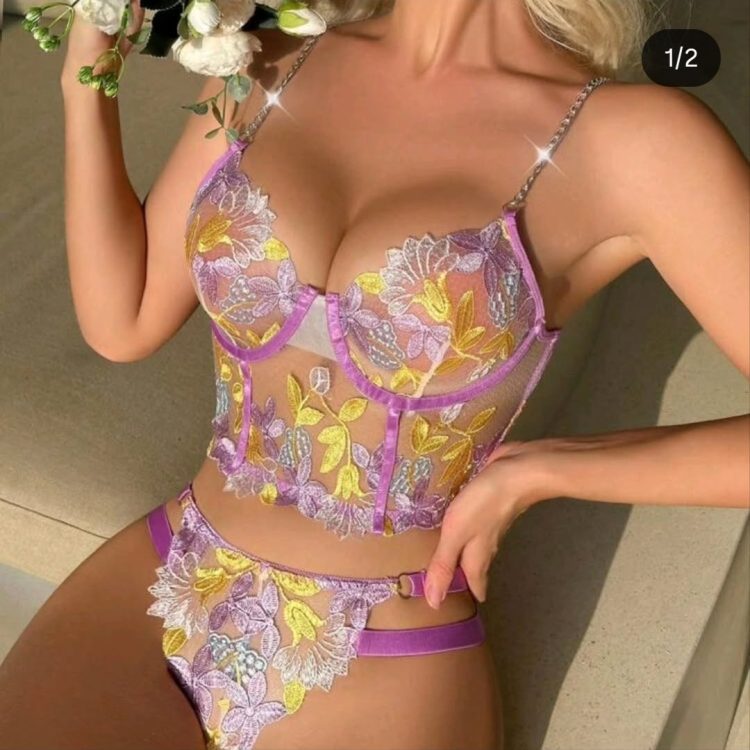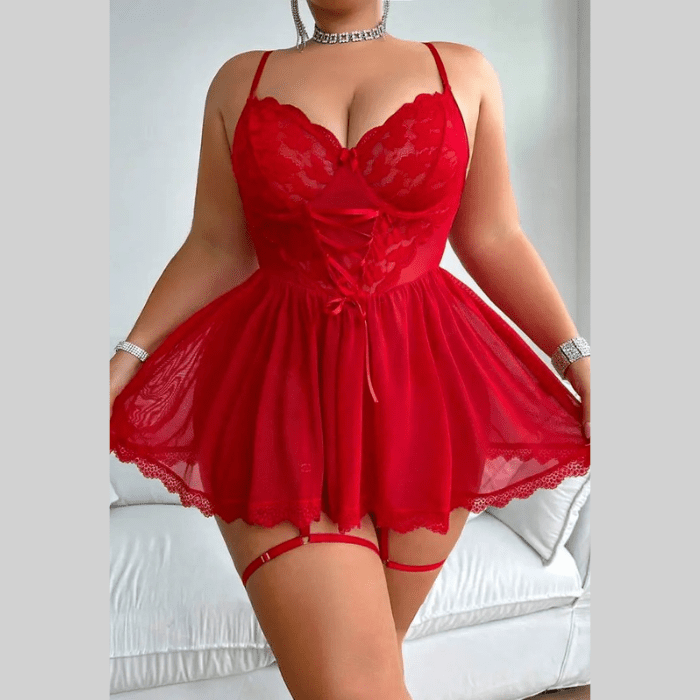 Este babydoll combina sensualidad y comodidad, confeccionado en encaje floral y malla ligera, ideal para resaltar la silueta con un toque romántico y atrevido. Incluye tanga a juego.