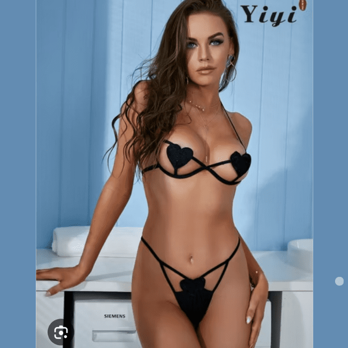 Elegante y sensual body de encaje transparente en color verde esmeralda. Su diseño halter se ajusta al cuello mediante un cordón que se amarra en la parte posterior, dejando la espalda completamente descubierta y realzando la figura.