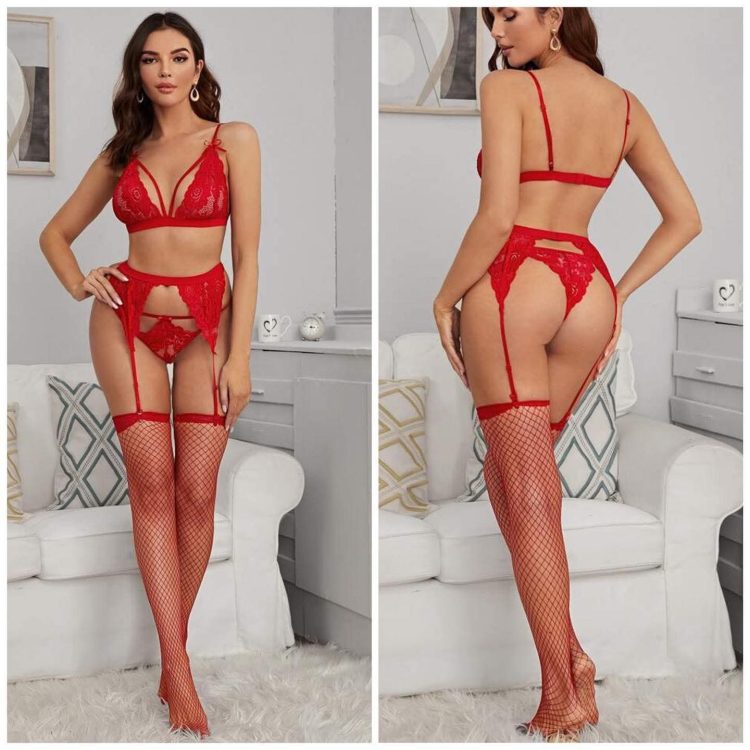 Incluye: Top, Colaless, Delantal, Collar, Pulsera, Ligas, Medias, Orejas.