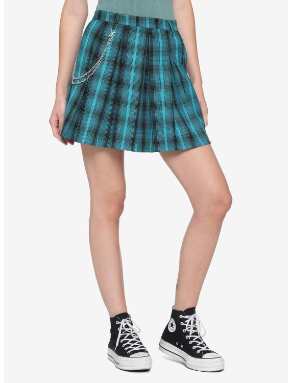 Falda corta de estilo escocés con diseño a cuadros en tonos verde petróleo y negro. Cuenta con un corte plisado que aporta movimiento y un look juvenil, ideal para outfits urbanos, alternativos o casuales. Su cintura alta estiliza la figura y permite combinarla fácilmente con tops ajustados, poleras o sweaters.