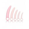 El kit de Dilatadores de silicona Inspire incluye cinco dilatadores de silicona que van progresando de a poco en largo y ancho. La forma y el sutil ángulo de cada una de los dilatadores permiten una fácil inserción mientras se adapta al cuerpo. El anillo de la base hace más fácil y cómodo insertar y retirar los dilatadores. Un tip que ayuda a relajar los músculos durante la inserción es colocar un mini vibrador dentro del anillo de la base del dilatador.