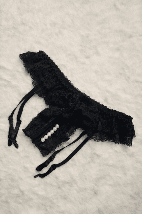 Elegante y sensual panty de encaje fino, diseñado para usar con ligueros. Su delicado diseño realza la figura y aporta un toque sofisticado y atrevido. Incluye tirantes ajustables y detalle decorativo frontal que lo hace aún más especial.
