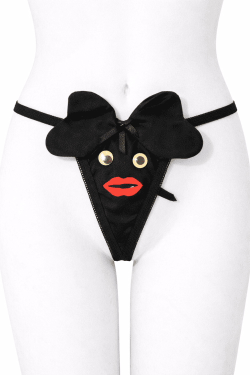 Portaligas en color negro confeccionado en encaje delicado con terminaciones onduladas. Incorpora lazos decorativos frontales que aportan un diseño femenino y elegante.