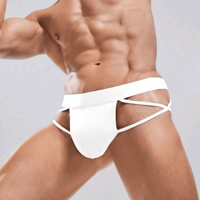 Ropa interior masculina tipo suspensor (jockstrap), diseñada para ofrecer soporte, comodidad y un estilo moderno y atrevido. Su diseño abierto en la parte posterior realza la figura, mientras que el material elasticado se adapta cómodamente al cuerpo.